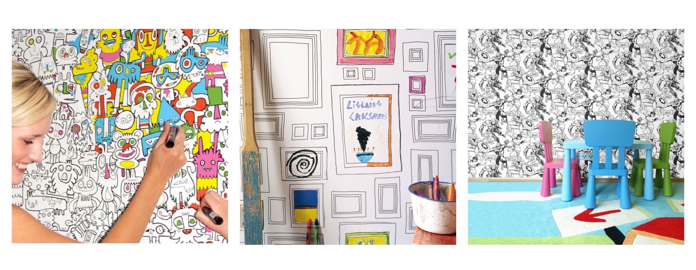 Fun and colourful designs are great for a children’s bedroom and can also be both educative, when the designs involve words, pictures and numbers, and interactive, with designs that involve stories, colouring in and games. Visit Graham & Browne and Baltic Shop for interactive options.