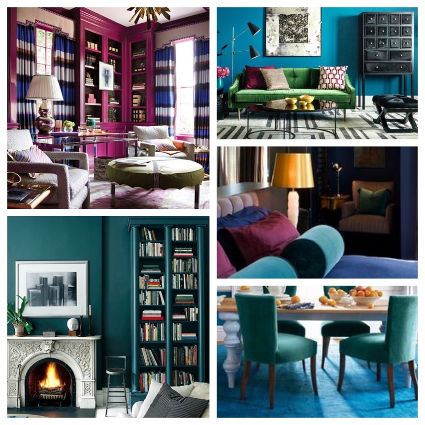A variety of jewel tones, including turquoise, teal, jade, ruby and burgundy can compliment each other and work well in a room together – but also varying shades of the same colour can be very effective and impactful.
