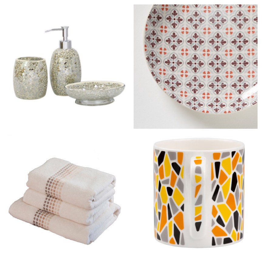 This season’s trend for mosaics shows how patterns of mosaic tiles or patterns in the style of, are not just for holiday destinations or even a bathroom – that can work in any room as a feature or pattern on the wall or homeware.