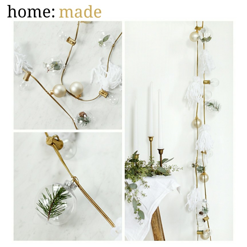 We have found this great adaptation of a standard festoon light garland. By spray painting it gold and adding some additions of baubles and fabric you can create gorgeous festive lighting.