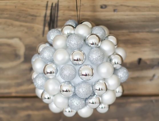 Using old baubles in shades of the same colour and modelling wire with an old sponge as an oasis, poke in each bauble on a wire stick to make a gorgeous dome of baubles – another great centre piece. Or go extravagant (slightly more complex) and create an entire sphere which could be hung from the ceiling!