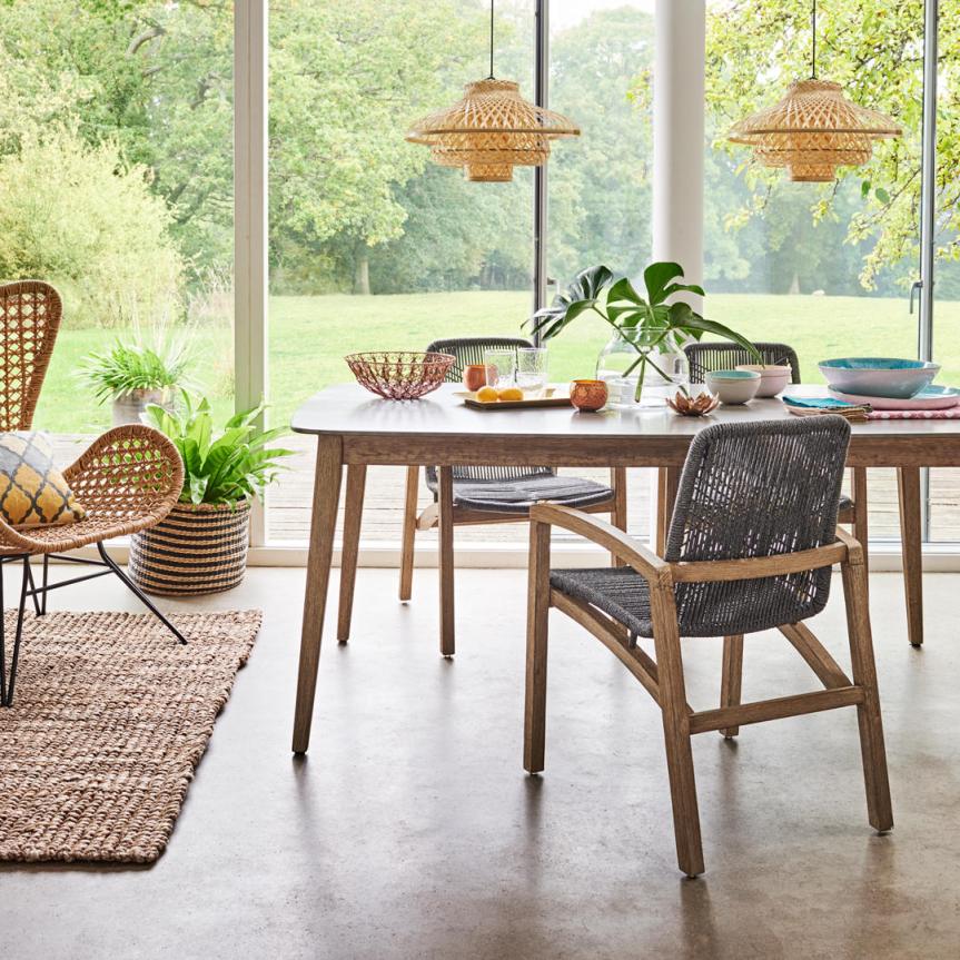 Wicker, rattan and woven furniture is having a huge comeback – Habitat has just launched a new collection of rattan furniture, with John Lewis going for a woven look with their range. The Leia range of outdoor dining furniture has a fishermans rope weave on its chairs and sofas.