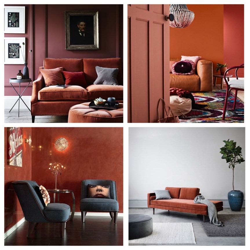 For walls we’ve found Red Earth (Farrow + Ball) and Heat (Little Green Paint Co). Create the full impact by also painting skirtings, doors, frames as well as walls in a rust tone.