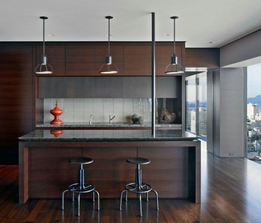 Creating a dark room isn’t for everyone, so consider where it will be most effective in your home. In a kitchen matching tones on units and floor sit great against a plain white wall. In a living room have a couple of key pieces of furniture, perhaps a coffee table and an armchair, keeping the soft furnishings light as a contrast, and of course introduce some colour.