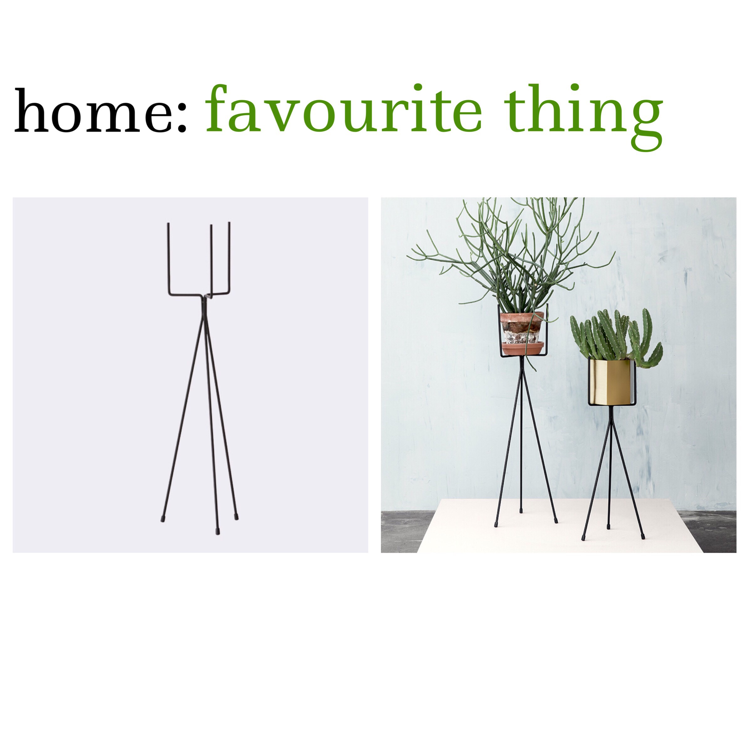 This powder coated iron plant stand is minimal and perfect with its clean lines. It could stand alone or pair up with its smaller counter part.