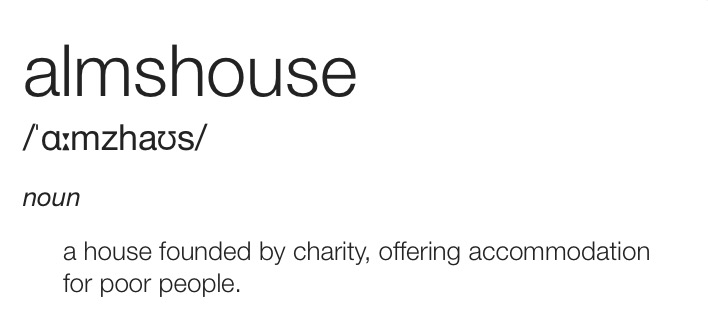 ‘An almshouse is charitable housing provided to enable people (typically elderly people who can no longer work to earn enough to pay rent) to live in a particular community.’