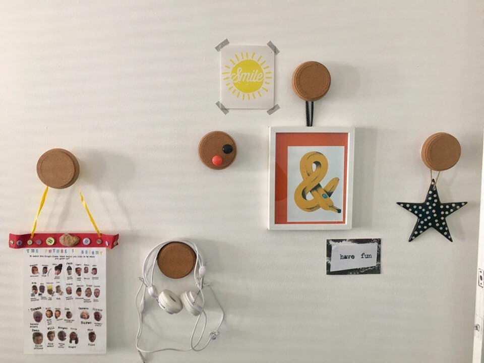 When planning your hook system search google, Pinterest and similar for ideas and inspiration. Think about the type of hook and the type of layout. Hooks can be classic in look but arranged in a quirky order – you don’t have to have them in a straight line. Hooks can be colourful, unusual or could be made from other items that produce something that can act as a hook. We found door knobs, cutlery and even a rake head used for hanging.