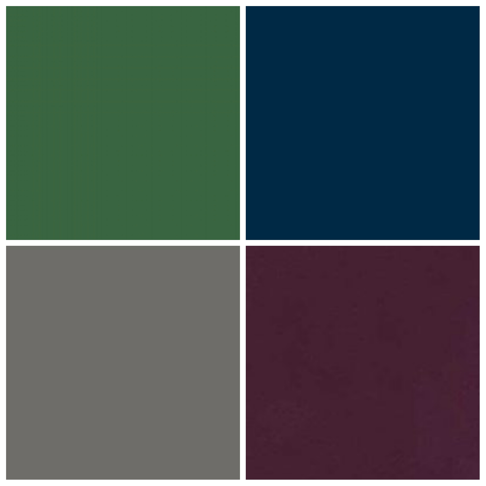 The main colour pallete is Aubergine, Burgandy, Blue, Grey and Green. Head over to the Dulux website to get the best choice of these rich tones. [ Deep Aubergine, Monarch, Buckingham Green, Oxford Blue and Gallant Grey ]