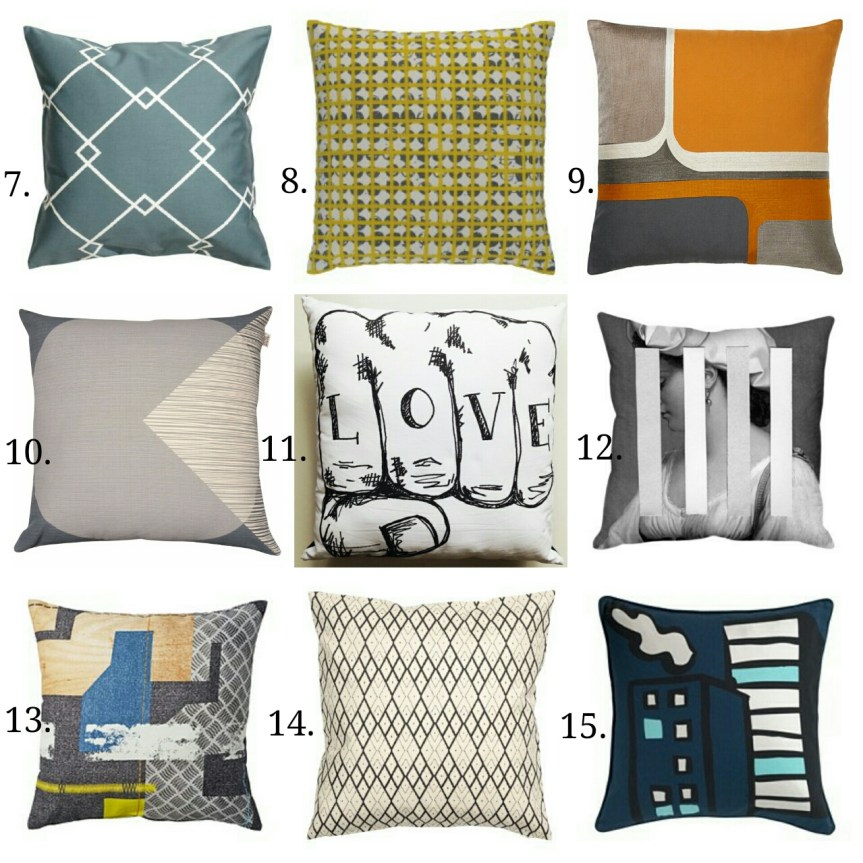 A very simple way to freshen up a room and bring a new feel to a space is by using soft furnishings, especially cushions. This can also be an inexpensive way of updating a sofa or chair by changing existing covers. This Summer the big trend is graphic print, and statement imagery. A good place to start is hm.com which has some gorgeous digital and geometric cushions cover from only £3.99. The colour pallete is quite muted with blues, greens and grey. One or two of these designs mixed with some plain cushions works really well. Be more adventurous by clashing geometric with strong imagery like the camera design cushion from violetandpercy.com.